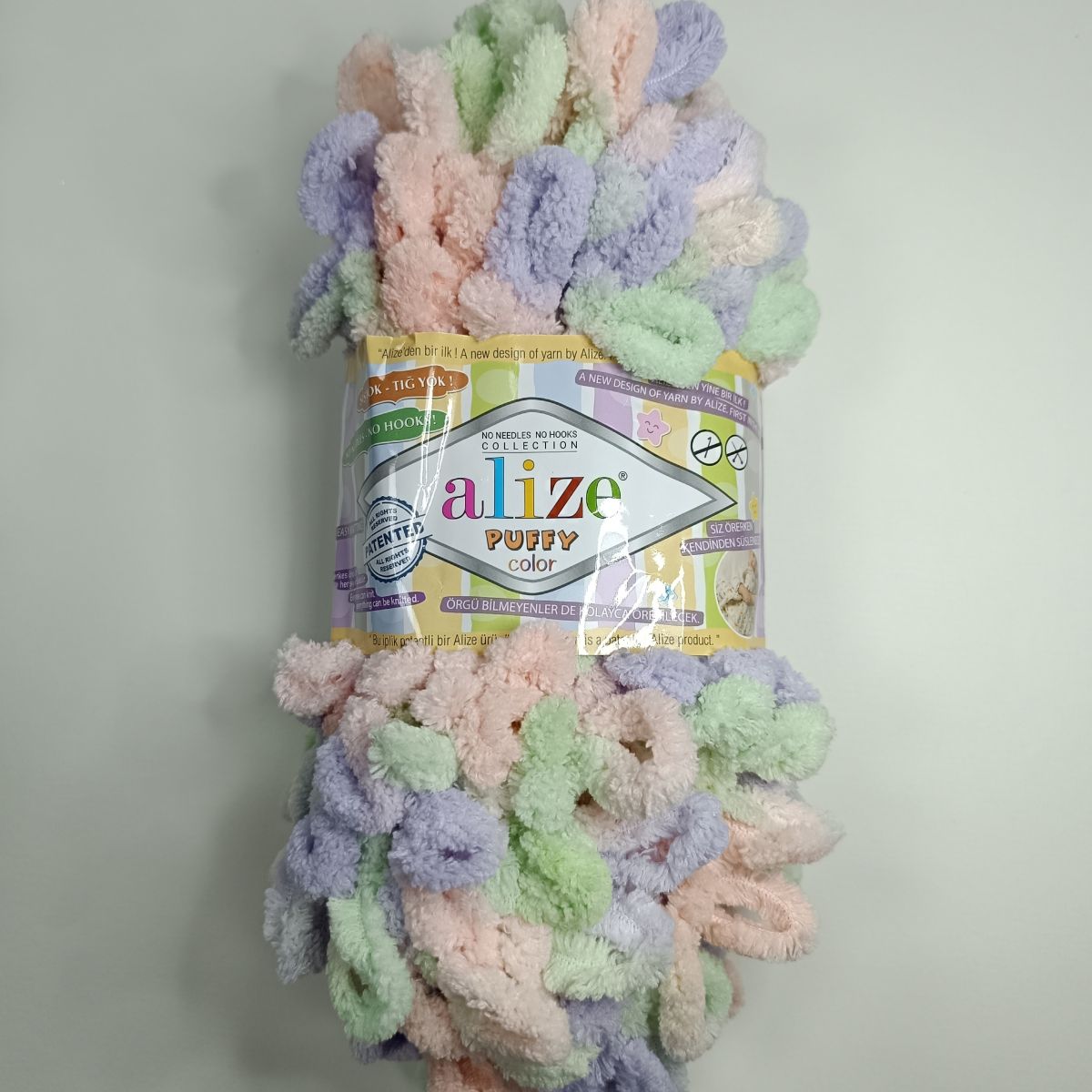 Пряжа Alize Puffy Color- удивительная новинка без нужды в спицах и крючках. Идеальна для детей, которые играясь обучаются вязанию и создают мягкую и объемную одежду с ощущением уюта и тепла. Процесс вязания прост - просто протягивайте петельки друг сквозь друга. Эта пряжа стала настоящим хитом и пользуется популярностью.