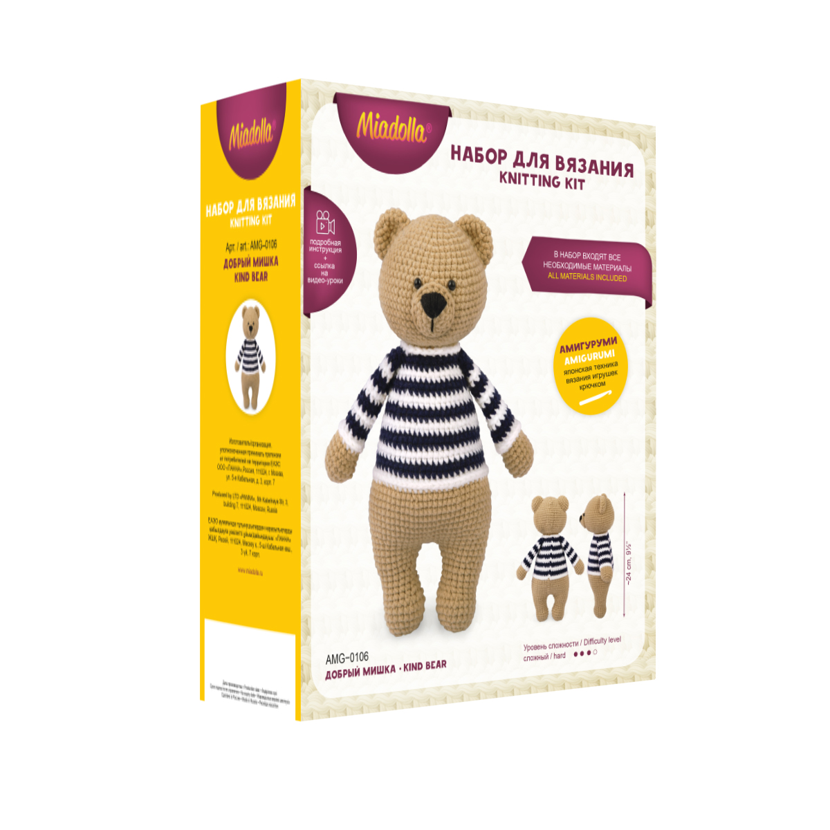 ТМ Miadolla® разработала для вас серию наборов для вязания игрушек крючком в популярной японской технике амигуруми. Серия состоит из игрушек разных размеров и уровней сложности: от небольших простых игрушек для новичков до детализированных персонажей для опытных вязальщиц.