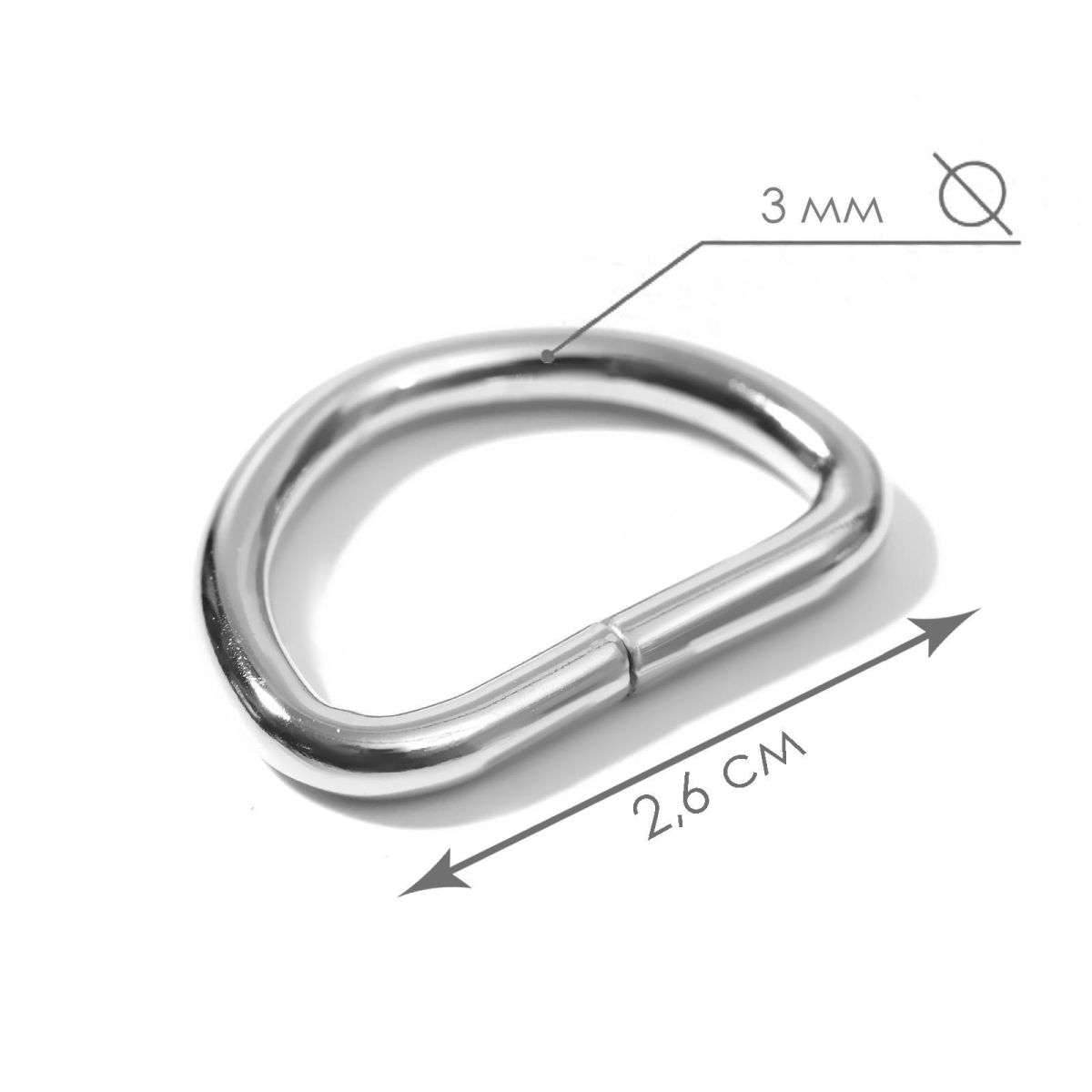 Полукольцо для сумок 10 мм, толщина - 2 мм, цвет серебро